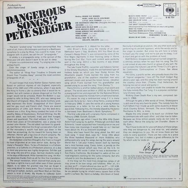 € 8.50 Media: Very Good Plus (VG+)Hoes: Very Good Plus (VG+)Pete Seeger – Dangerous Songs!? (LP, Album)