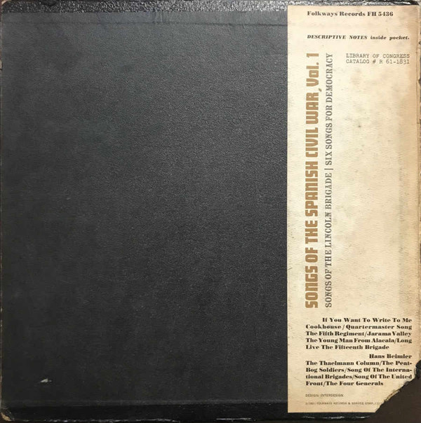 € 4.50 Media: Good Plus (G+)Hoes: Very Good (VG)Pete Seeger And Group & Ernst Busch And Chorus – Songs Of The Spanish Civil War, Vol. 1: Songs Of The Lincoln Brigade, Six Songs For Democracy (LP, Comp, Mono, RE)