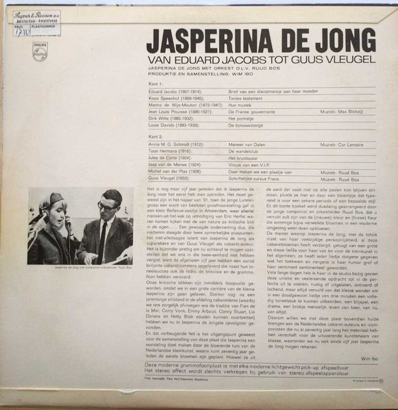 € 7.50 Media: Very Good Plus (VG+)Hoes: Very Good (VG)Jasperina de Jong – Van Eduard Jacobs Tot Guus Vleugel (LP, Album)