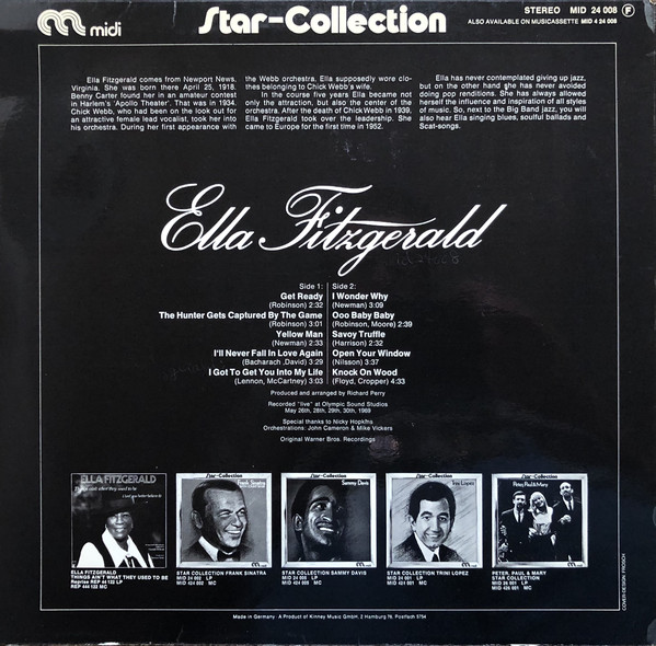 € 6.00 Media: Very Good Plus (VG+)Hoes: Very Good (VG)Ella Fitzgerald – Star-Collection (LP, Album, RE)
