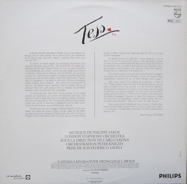 € 9.50 Media: Very Good Plus (VG+)Hoes: Very Good (VG)Philippe Sarde – Tess – Extraits De La Bande Originale (LP, Album, Gat)
