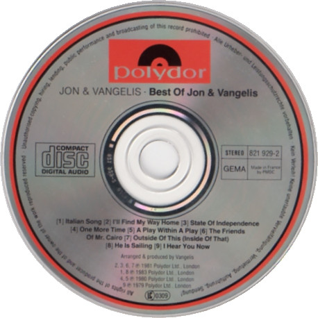€ 6.50 Media: Very Good (VG)Hoes: Very Good (VG)Jon And Vangelis* – The Best Of Jon And Vangelis (CD, Comp, RE, PDO)