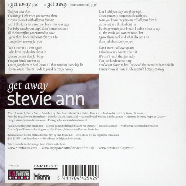 € 2.50 Media: Fair (F)Hoes: Very Good (VG)Stevie Ann – Get Away (CD, Single)