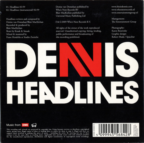 € 6.50 Media: Very Good Plus (VG+)Hoes: Very Good Plus (VG+)Dennis (68) – Headlines (CD, Single)