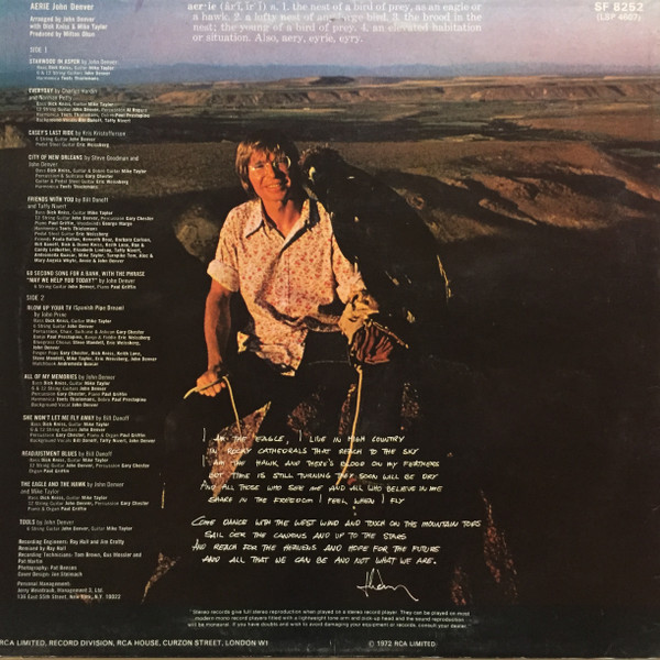 € 9.50 Media: Very Good (VG)Hoes: Very Good Plus (VG+)John Denver – Aerie (LP, Album)