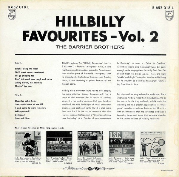 € 14.50 Media: Very Good (VG)Hoes: Very Good (VG)The Barrier Brothers – Hillbilly Favourites Vol. 2 (LP, Comp, Mono)