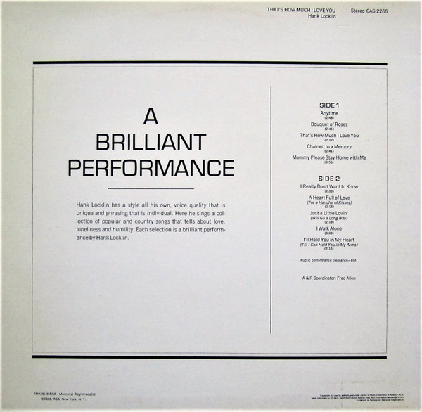 € 7.50 Media: Very Good (VG)Hoes: Very Good (VG)Hank Locklin – That’s How Much I Love You (LP, Album)