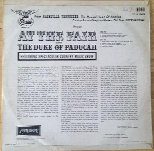 € 6.50 Media: Very Good (VG)Hoes: Very Good Plus (VG+)The Duke of Paducah & other artistes – At The Fair (LP, Album, Mono)