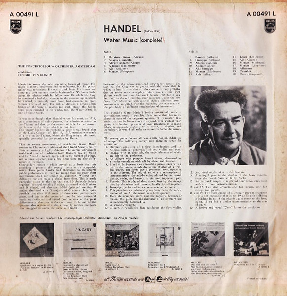 € 8.50 Media: Very Good (VG)Hoes: Very Good Plus (VG+)Georg Friedrich Händel – The Concertgebouworkest – Eduard van Beinum – Water Music Complete (LP, Mono)
