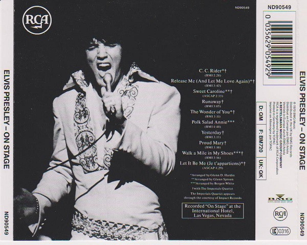 € 6.00 Media: Good Plus (G+)Hoes: Very Good Plus (VG+)Elvis Presley – On Stage, February 1970 (CD, Album, RE)