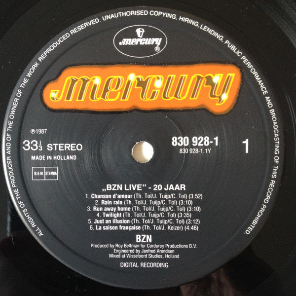 € 5.00 Media: Very Good (VG)Hoes: Very Good Plus (VG+)BZN – Live 20 Jaar (2xLP, Album)