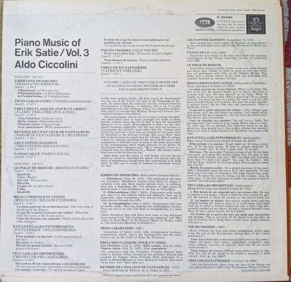 Erik Satie, Aldo Ciccolini – Piano Music Of Erik Satie, Vol. 3 (LP, Album)