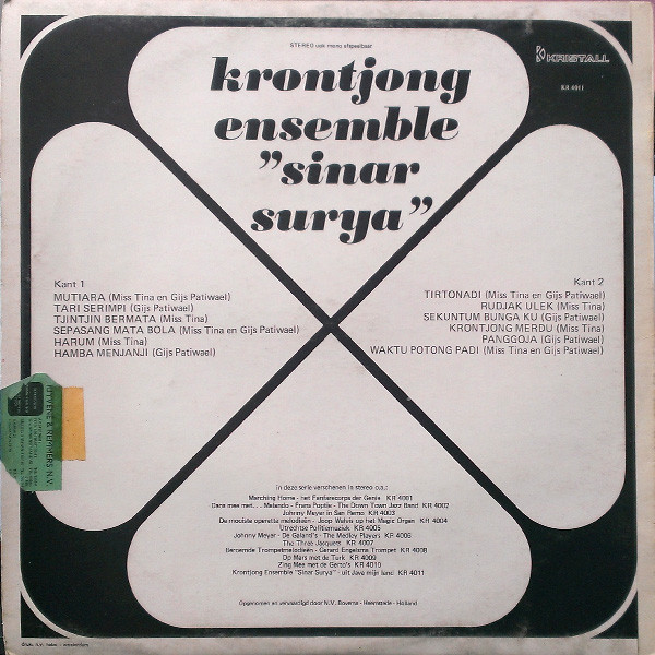 € 17.00 Media: Near Mint (NM or M-)Hoes: Very Good Plus (VG+)Krontjong Ensemble “Sinar Surya”* – Lief Java (LP, RE)