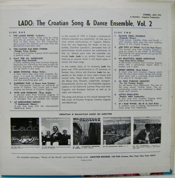 € 8.50 Media: Very Good Plus (VG+)Hoes: Very Good (VG)Lado (2) – Monitor Presents The Croatian Song And Dance Ensemble (LP)