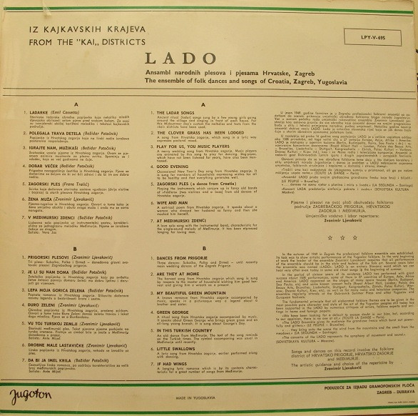 € 8.50 Media: Good Plus (G+)Hoes: Very Good (VG)Lado (2) – Iz Kajkavskih Krajeva = From The “Kai” Districts (LP, Mono)