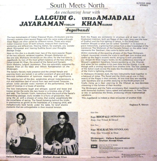 € 2.50 Media: Good Plus (G+)Hoes: Very Good (VG)Lalgudi G. Jayaraman* & Ustad Amjad Ali Khan* – South Meets North (Jugalbandi) (LP, Album)