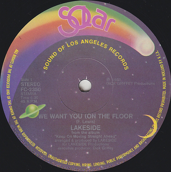 € 13.00 Media: Very Good Plus (VG+)Hoes: Very Good Plus (VG+)Lakeside – We Want You (On The Floor) (12″, Single)