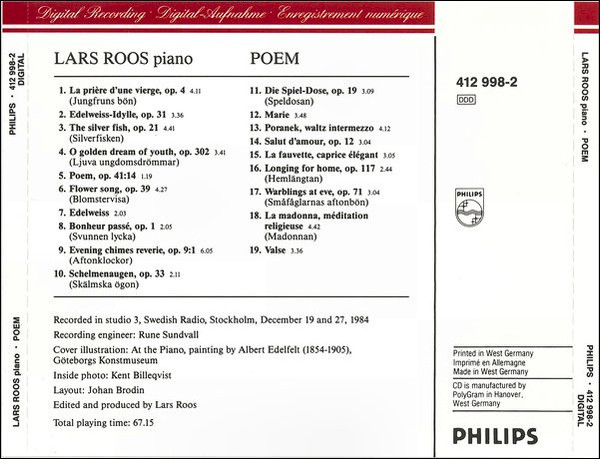 € 7.00 Media: Mint (M)Hoes: Near Mint (NM or M-)Lars Roos – Piano Poem 2 (Drawing Room Pieces • Salongsstücke • Salongsmusik) (CD)