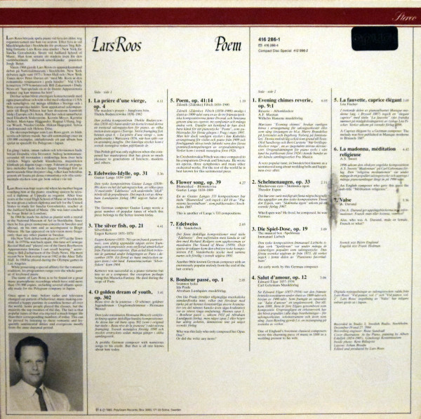 € 7.50 Media: Very Good Plus (VG+)Hoes: Very Good Plus (VG+)Lars Roos – Poem (LP)