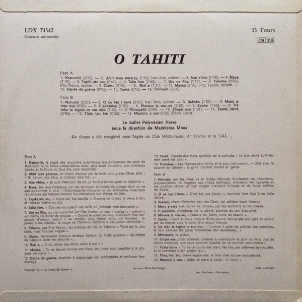 € 4.50 Media: Good Plus (G+)Le Ballet Polynésien Heiva* – O Tahiti (LP, Album)