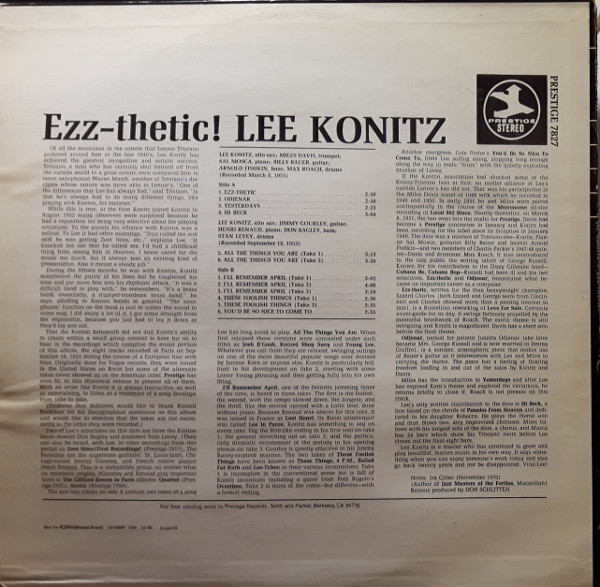 € 5.50 Media: Near Mint (NM or M-)Hoes: Very Good Plus (VG+)Lee Konitz, Miles Davis, Billy Bauer, Sal Mosca, Max Roach, Stan Levey – Ezz-thetic! (LP, Comp, RE, RM)