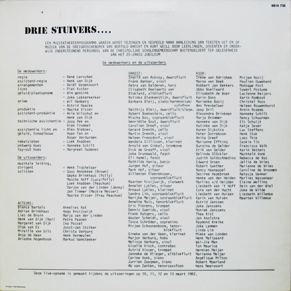 € 6.50 Media: Very Good (VG)Hoes: Very Good (VG)Leerlingen En Docenten Christelijke Scholengemeenschap Buitenveldert – Driestuivers… (LP, Album)