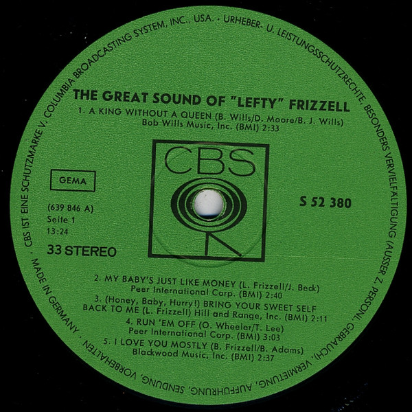 € 10.00 Media: Near Mint (NM or M-)Hoes: Very Good Plus (VG+)Lefty Frizzell – Lefty Frizzell’s Greatest Hits (LP, Comp, RE)