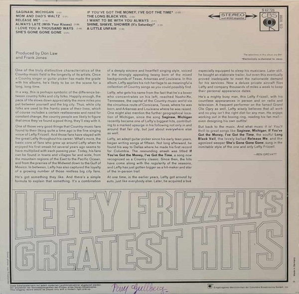 Lefty Frizzell – Lefty Frizzell’s Greatest Hits (LP, Comp)