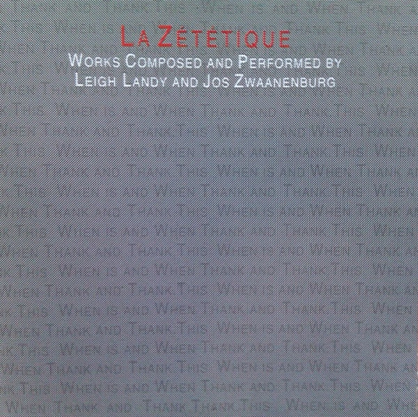€ 5.00 Media: Very Good Plus (VG+)Hoes: Very Good (VG)Leigh Landy and Jos Zwaanenburg – La Zététique – Works Composed By Leigh Landy And Jos Zwaanenburg (CD, Album)