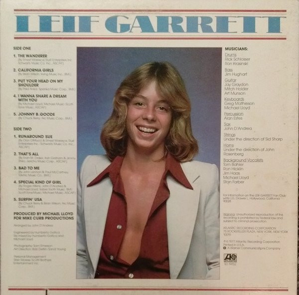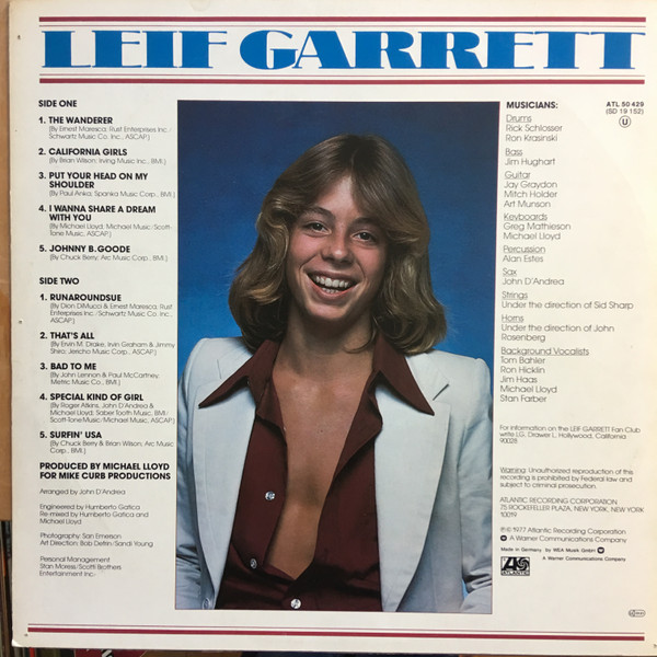 € 6.00 Media: Very Good Plus (VG+)Hoes: Very Good (VG)Leif Garrett – Leif Garrett (LP, Album)