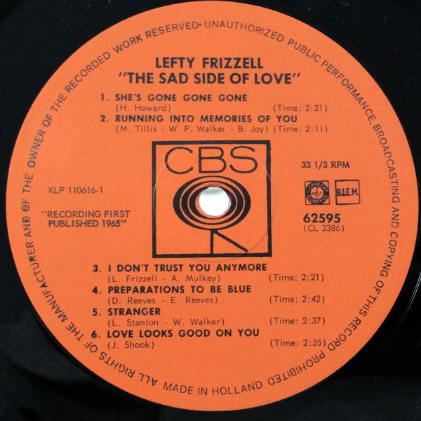€ 7.50 Media: Very Good Plus (VG+)Hoes: Very Good Plus (VG+)Lefty Frizzell – The Sad Side Of Love (LP, Mono)