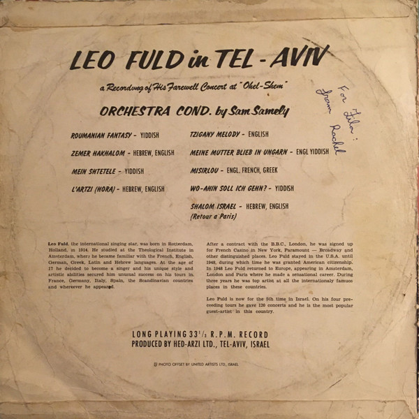 € 7.00 Media: Very Good (VG)Hoes: Very Good (VG)Leo Fuld – A Concert In Israel (10″)