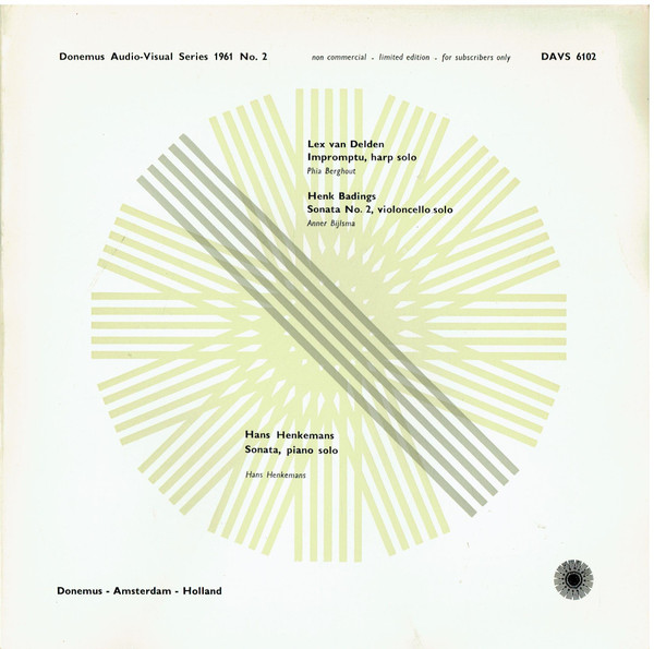 € 6.50 Media: Very Good (VG)Hoes: Very Good (VG)Lex van Delden / Henk Badings / Hans Henkemans – Impromptu, Harp Solo / Sonata No. 2, Violoncello Solo / Sonata, Piano Solo (10″)