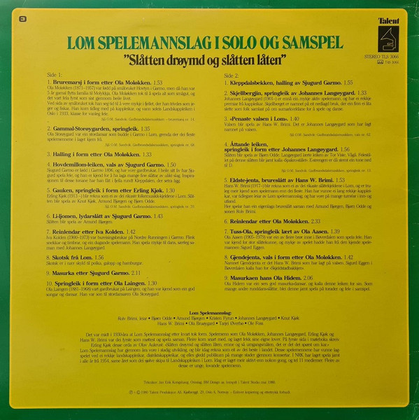 € 7.00 Media: Very Good (VG)Hoes: Very Good (VG)Lom Spelemannslag – I Solo Og Samspel – “Slåtten Drøymd Og Slåtten Låten” (LP, Album)