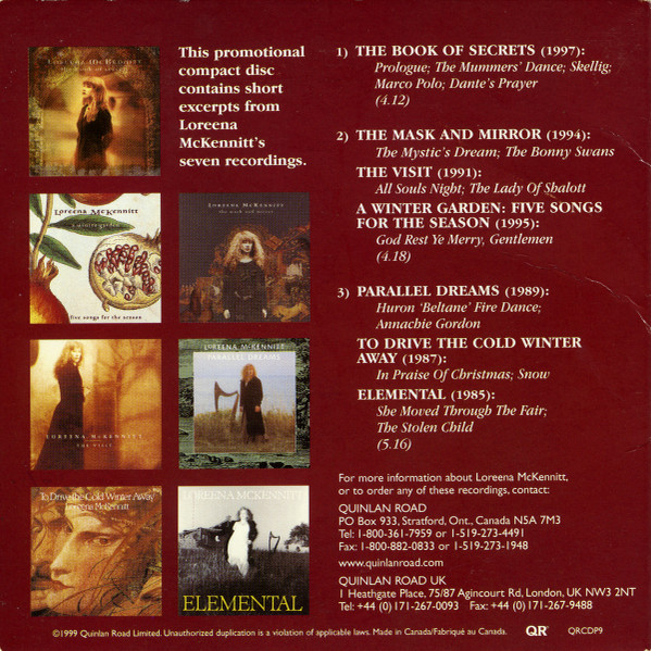 € 6.50 Media: Very Good (VG)Hoes: Very Good Plus (VG+)Loreena McKennitt – Sampler CD 9 • Full Catalogue • 1985-1997 (CD, Comp, Promo, Smplr)