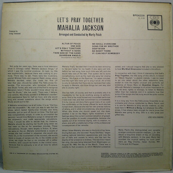 € 8.00 Media: Very Good (VG)Hoes: Good Plus (G+)Mahalia Jackson And The Falls-Jones Ensemble – Bless This House (LP, Album)