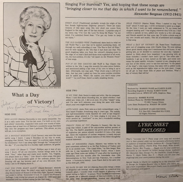 € 4.00 Media: Good Plus (G+)Hoes: Very Good (VG)Marion Wade – What A Day Of Victory! (LP, Album)