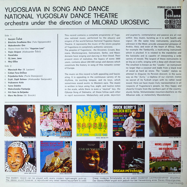 € 5.00 Media: Very Good (VG)Hoes: Very Good (VG)National Yugoslav Dance Theatre Under The Direction Of Mile Urošević – Yugoslavia In Song And Dance (LP, Album)