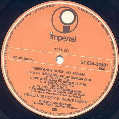 € 9.50 Media: Near Mint (NM or M-)Hoes: Very Good Plus (VG+)Neerlands Hoop In Bange Dagen – Neerlands Hoop In Panama (LP, Album)