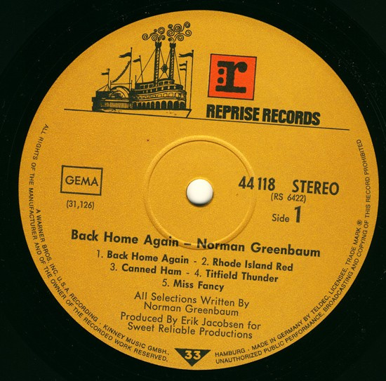 € 7.50 Media: Very Good Plus (VG+)Hoes: Very Good Plus (VG+)Norman Greenbaum – Back Home Again (LP, Album, RP)