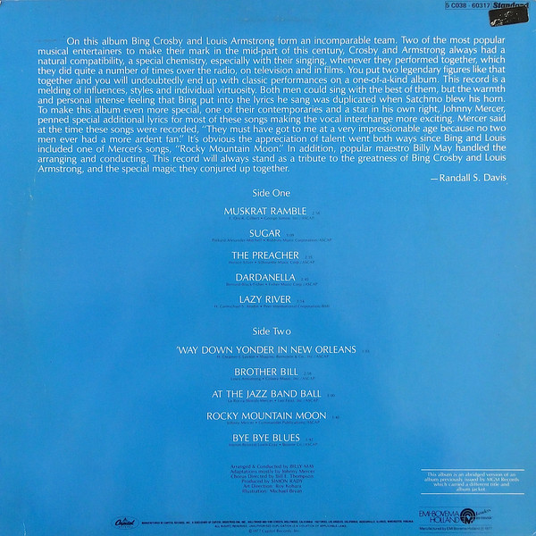 € 6.00 Media: Very Good Plus (VG+)Hoes: Very Good Plus (VG+)Bing Crosby & Louis Armstrong – Bing & Satchmo (LP, Album, RE)