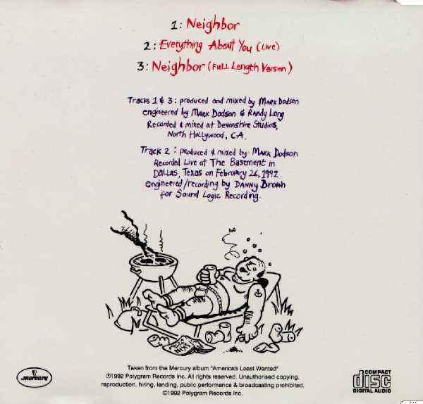 € 10.00 Media: Very Good Plus (VG+)Hoes: Very Good Plus (VG+)Ugly Kid Joe – Neighbor (CD, Single)