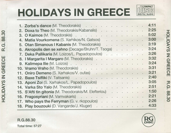€ 4.50 Media: Good Plus (G+)Hoes: Very Good (VG)Unknown Artist – Holidays In Greece (CD, Comp)