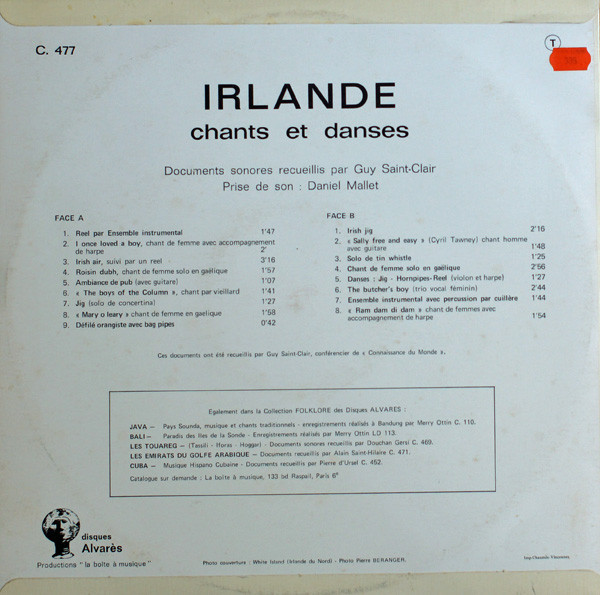 € 7.50 Media: Very Good Plus (VG+)Hoes: Very Good Plus (VG+)Unknown Artist – Irlande – Chants Et Danses (LP)