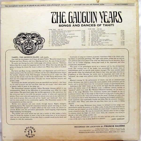 € 9.50 Media: Near Mint (NM or M-)Hoes: Very Good Plus (VG+)Unknown Artist – The Gauguin Years – Songs And Dances Of Tahiti (LP, Album, RE)