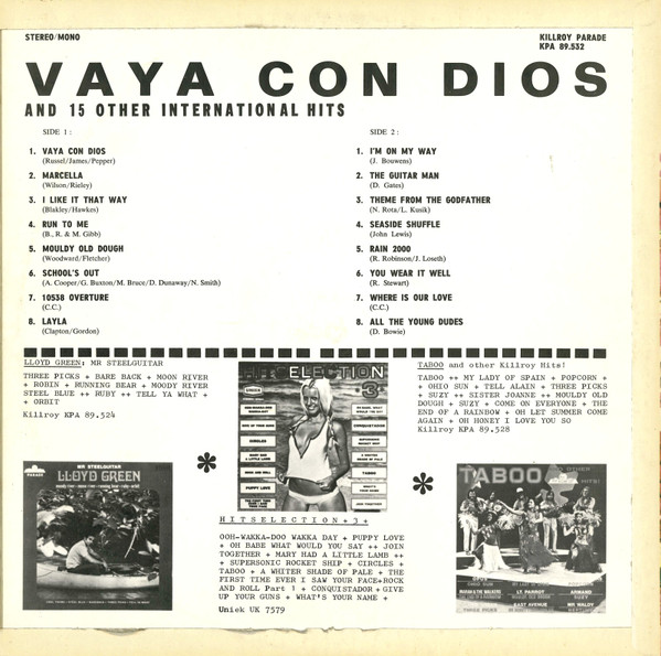 € 5.00 Media: Very Good Plus (VG+)Hoes: Very Good (VG)Unknown Artist – Vaya Con Dios And 15 Other International Hits (LP)