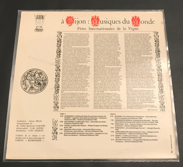 € 7.50 Media: Very Good Plus (VG+)Hoes: Very Good Plus (VG+)Various – À Dijon: Musiques Du Monde – Fêtes Internationales De La Vigne (LP, Album)